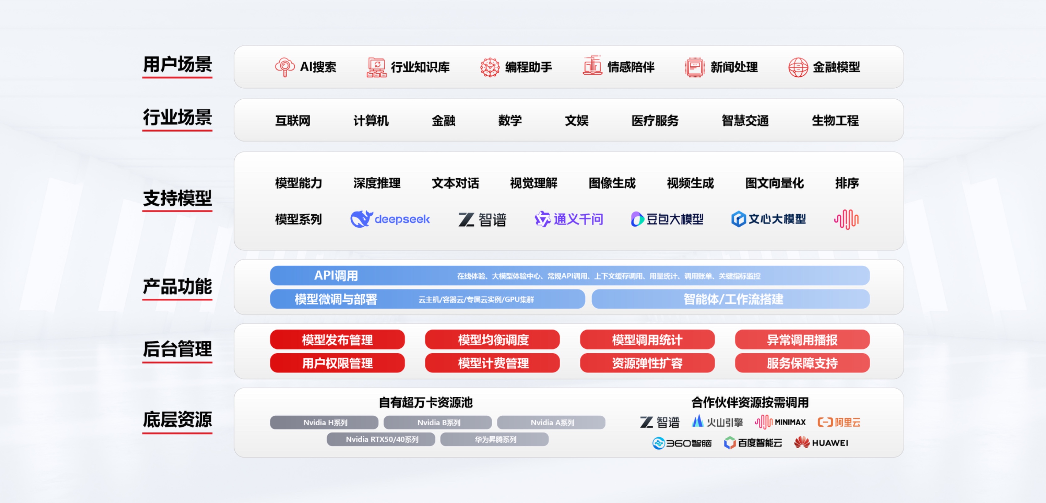 北京超算MaaS平台作为自主研发的一站式大模型服务平台,依托超万卡算力资源池与专业技术服务团队,创新构建"模型即服务"体系,深度融合DeepSeek、智谱、百川、千问、文心、MiniMax等主流大模型,覆盖文本对话、视觉理解、图片视频生成、向量化等全场景能力,为各行业提供稳定可靠、高性价比的AI能力输出。